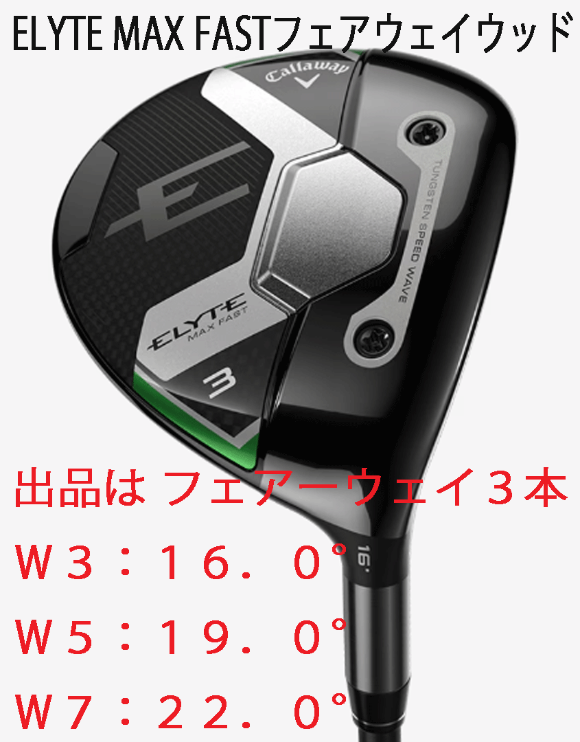 > 新品■2025.2■キャロウェイ■ELYTE-MAX FAST■フェアーウェイ3本■W3:16.0/W5:19.0/W7:22.0■LIN-Q GREEN-40 for CALLAWAY カーボン■R■