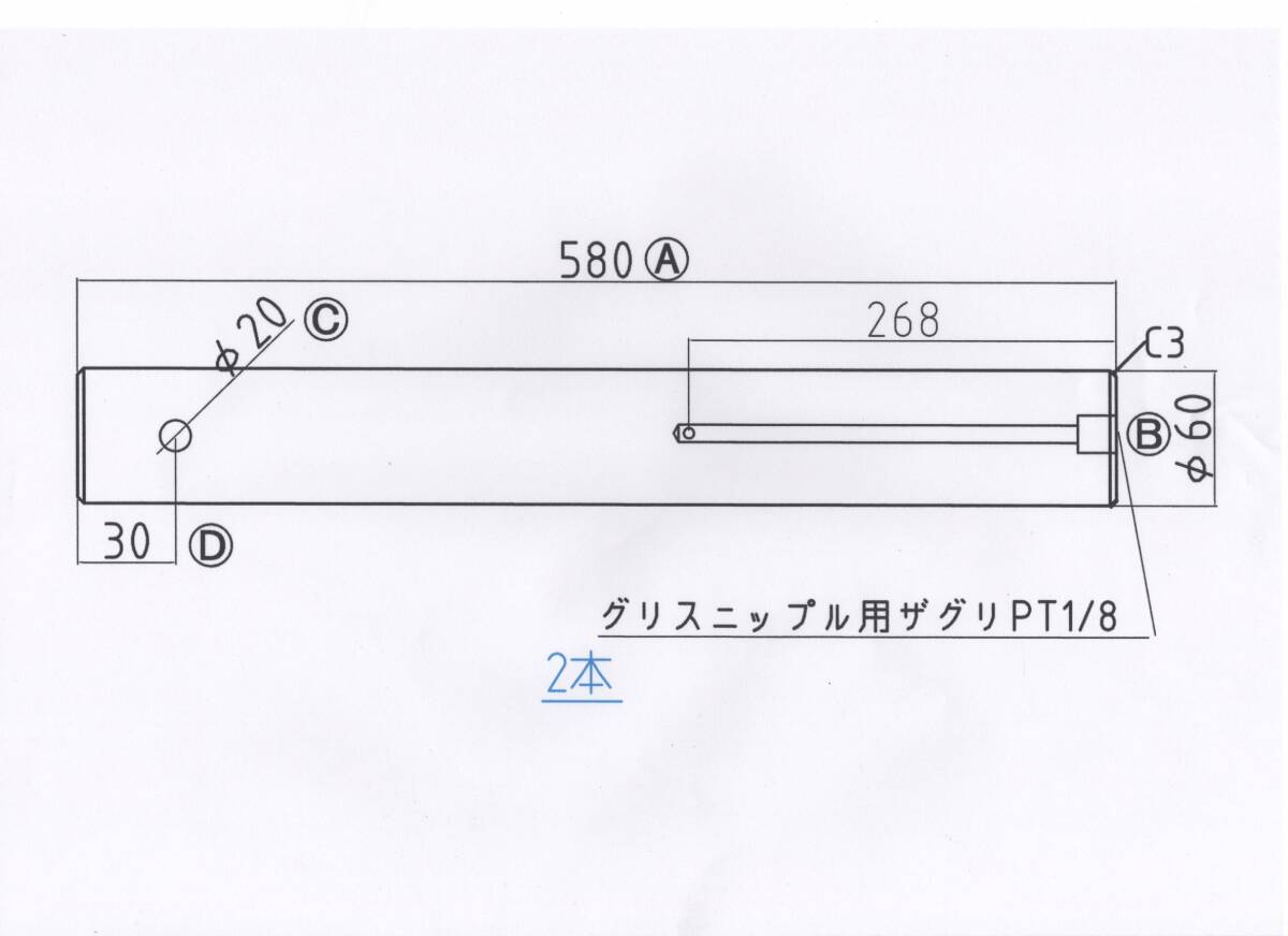 - NO 1996 Φ60用 全長580mm グリス穴付きバケット ピン 2本セット /アタッチメントブッシュ4個セット