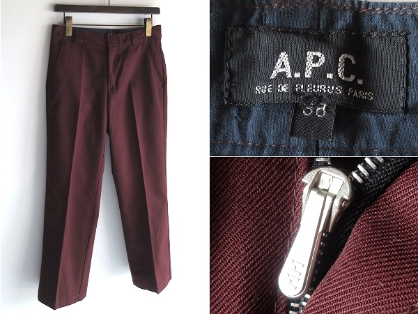 > 希少 00sビンテージ A.P.C. アーペーセー HIVER2001 ririジップ ポリコットン ストレートパンツ 38 ボルドー チュニジア製