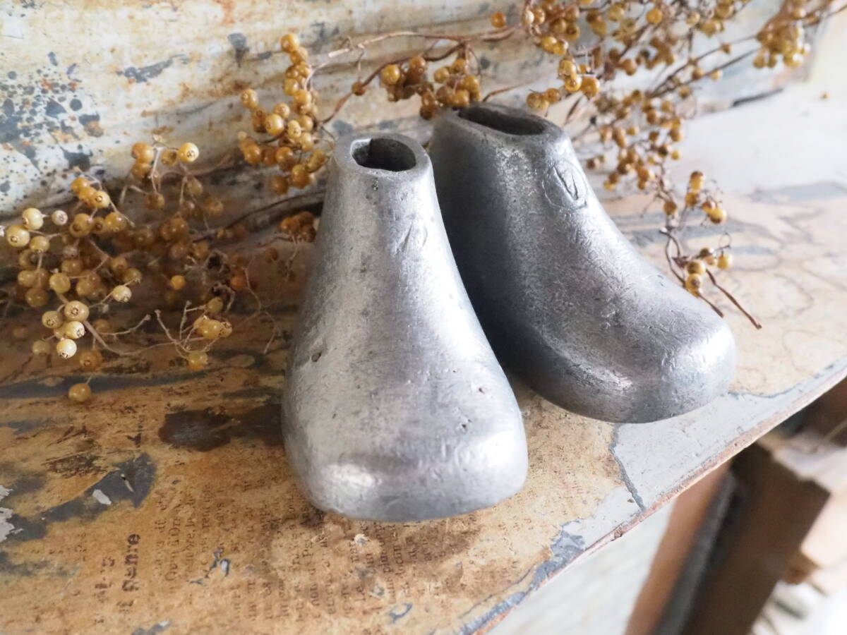 - 【フランス蚤の市アルマイトの子供靴型12㎝】古道具アンティーク職人道具ドライフラワー花瓶フラワーベース骨董古民具シューズ金型