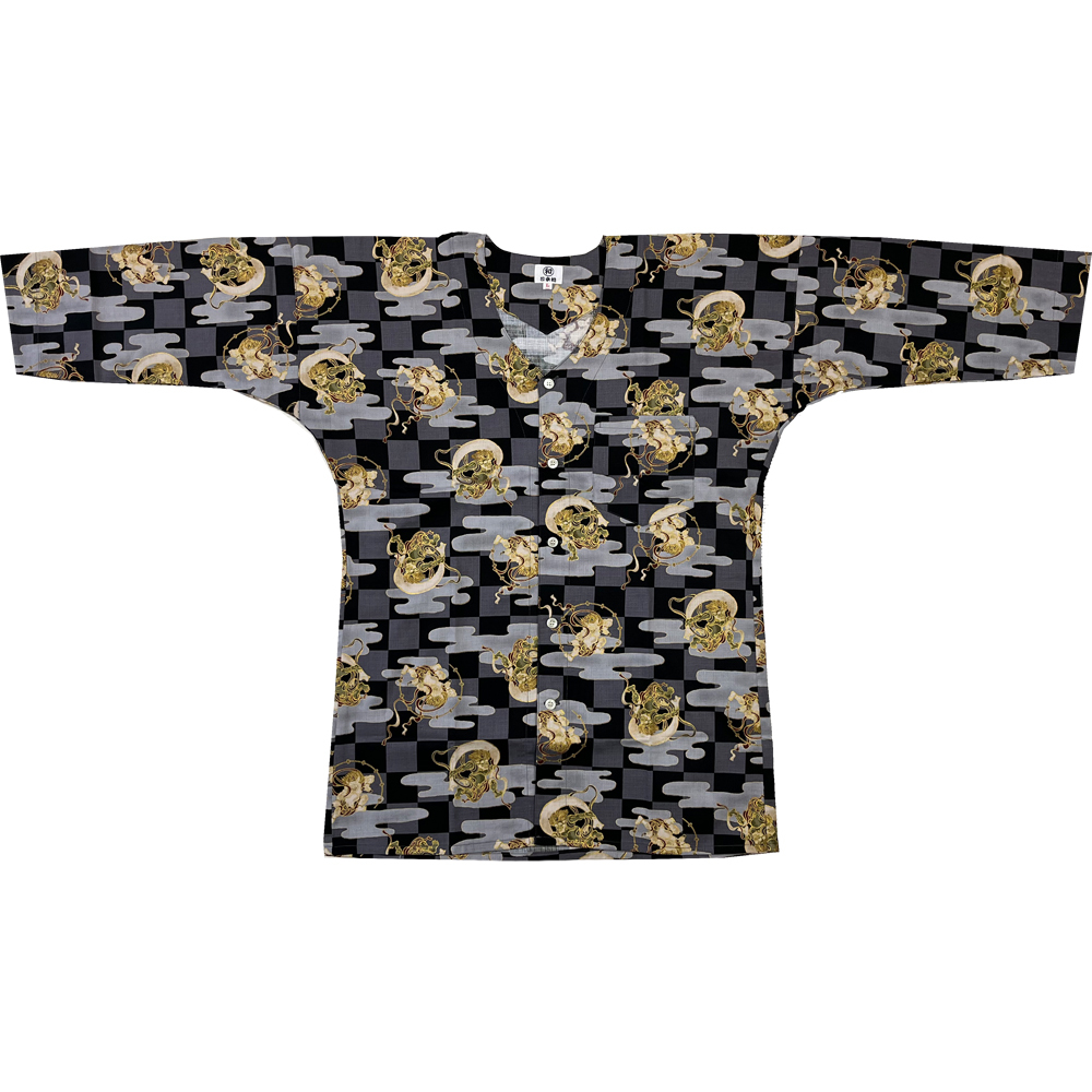 - お祭用品/肉襦袢 まるわ日本橋 鯉口シャツ 風神雷神市松 [R2506-10黒鼠] 3L(大人用)