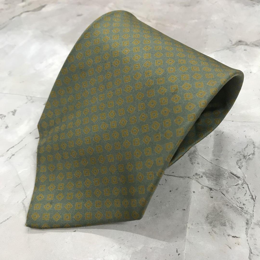 - エルメネジルド ゼニア ネクタイ 薄緑 黄色 小紋柄【n746】