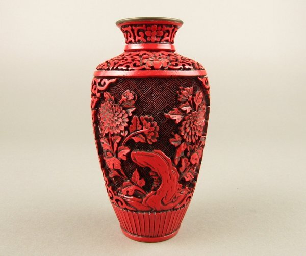 - 【M167】 堆朱 花入 花瓶 高さ153mm 検)剔紅