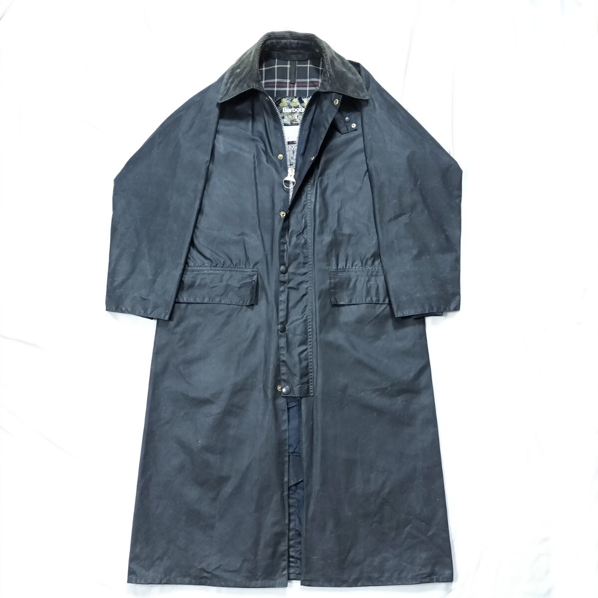 - 90s Barbour burghley c34 ネイビー バブアー 3クラウン バーレー バーレイ ステンカラーコート オイルド