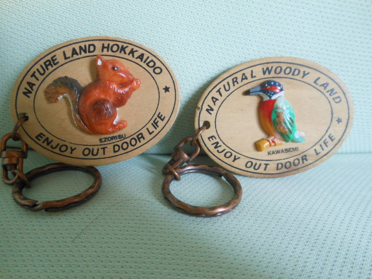 - キーホルダー2個 北海道 えぞりす・かわせみ 木製