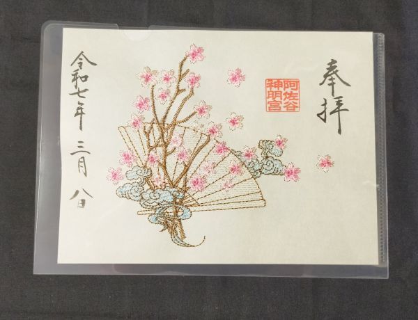 - ♭◆阿佐ヶ谷神明宮(東京・杉並・阿佐ヶ谷)◆大和がさね(刺しゅう入)御朱印 桜の特別御朱印 見開きサイズ 令和7年(2025年)3月
