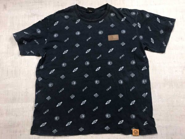 - NJPW IWGP 新日本プロレス New Japan Pro Wrestling 格闘技 ロゴ 小紋柄 総柄 ワッペン 半袖Tシャツ カットソー メンズ 大きいサイズ 4L 紺