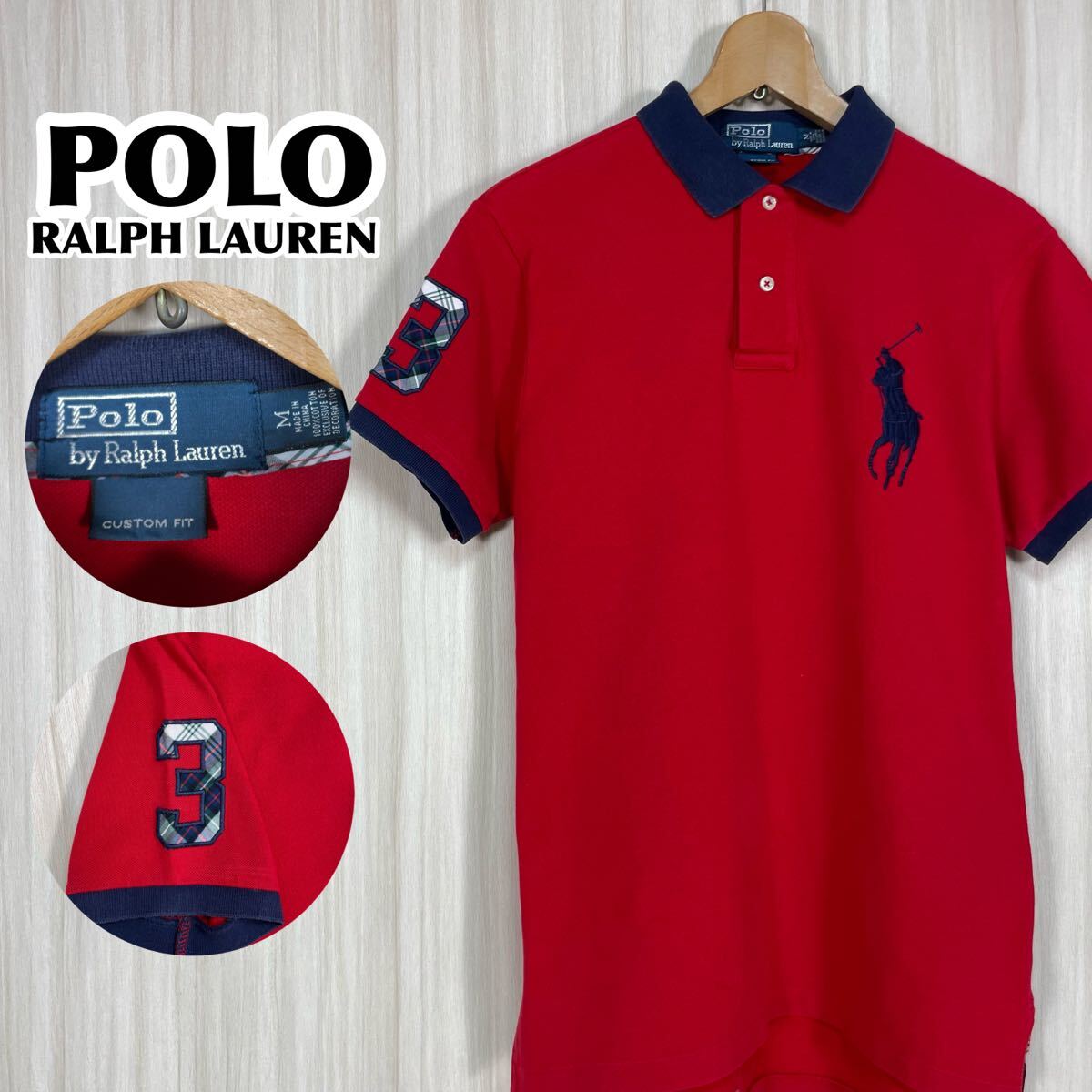> ☆国内正規品☆POLO ポロバイラルフローレン 刺繍 ビッグポニー ナンバリング 半袖ポロシャツ レッド タータンチェック アメカジ 90s 古着