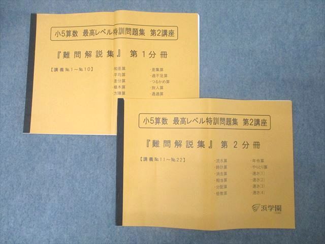 - 浜学園 小5算数 最高レベル特訓問題集 第2講座 『難問解説集』 第1/2分冊【問題掲載無し】 2023 計2冊 015m2D