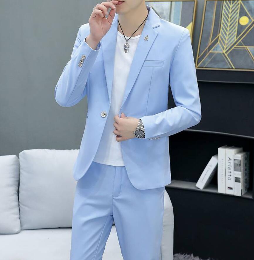 - 春秋新品 /カジュアルスーツ メンズ セットアップ サマースーツ おしゃれ サマージャケット テーラード 長袖 お色選択可/ブルー