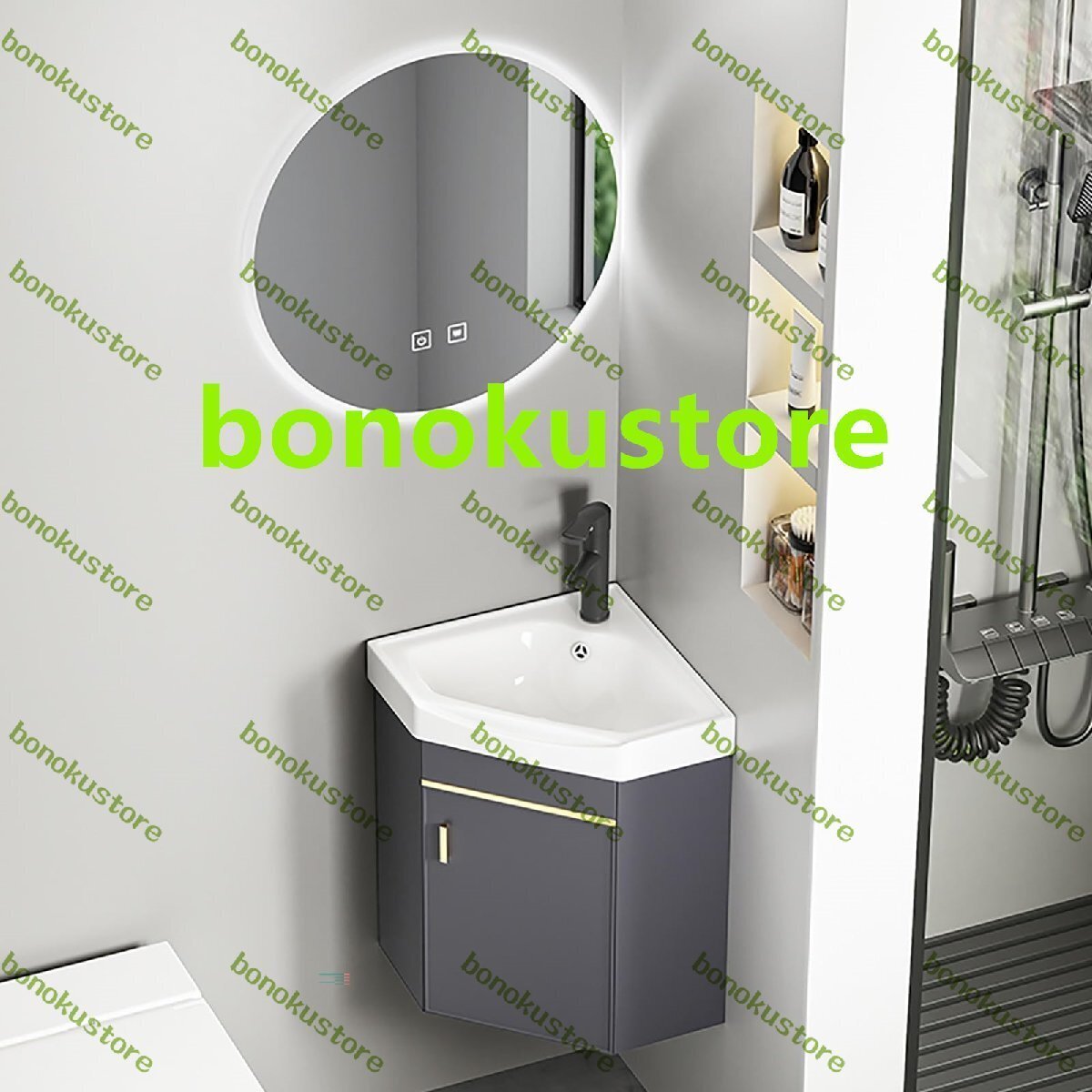 - 洗面化粧台 シンクと LED ミラーキャビネット付き コーナーバスルームキャビネット セラミックシンク付き 収納コンテナ付き 38*38cm