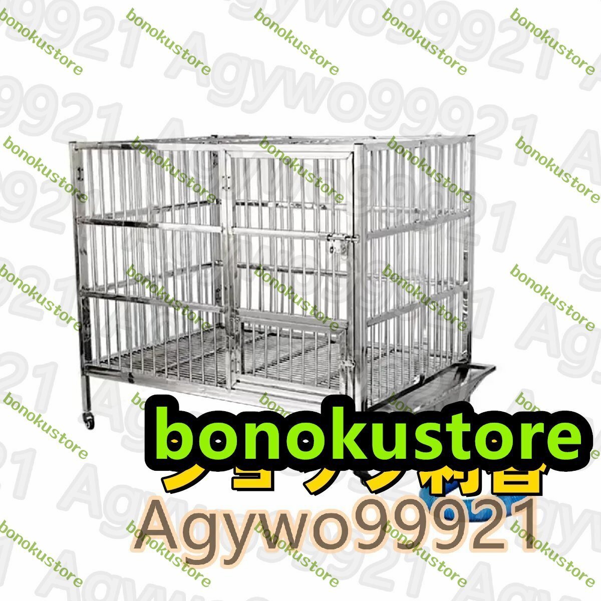 - ステンレス製の犬用ケージ、キャスター付き 室内犬 ゲージ 犬小屋・ケージ 犬舎 ドッグハウス 犬用トイレ付き(125X75X95cm)