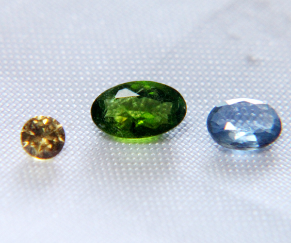 > ♪【激安】天然クロムダイオプサイド0.25ct&ブルーサファイア0.16ct、イエローサファイア0.06ct【21-2】