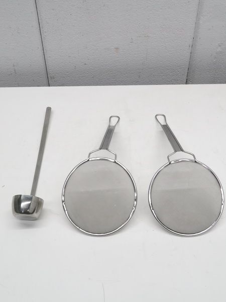 - H411◆調理器具◆プレス式丸カス揚げ φ13.5cm 2本+レードル 36cc 栃木 宇都宮 中古 業務用 厨房機器