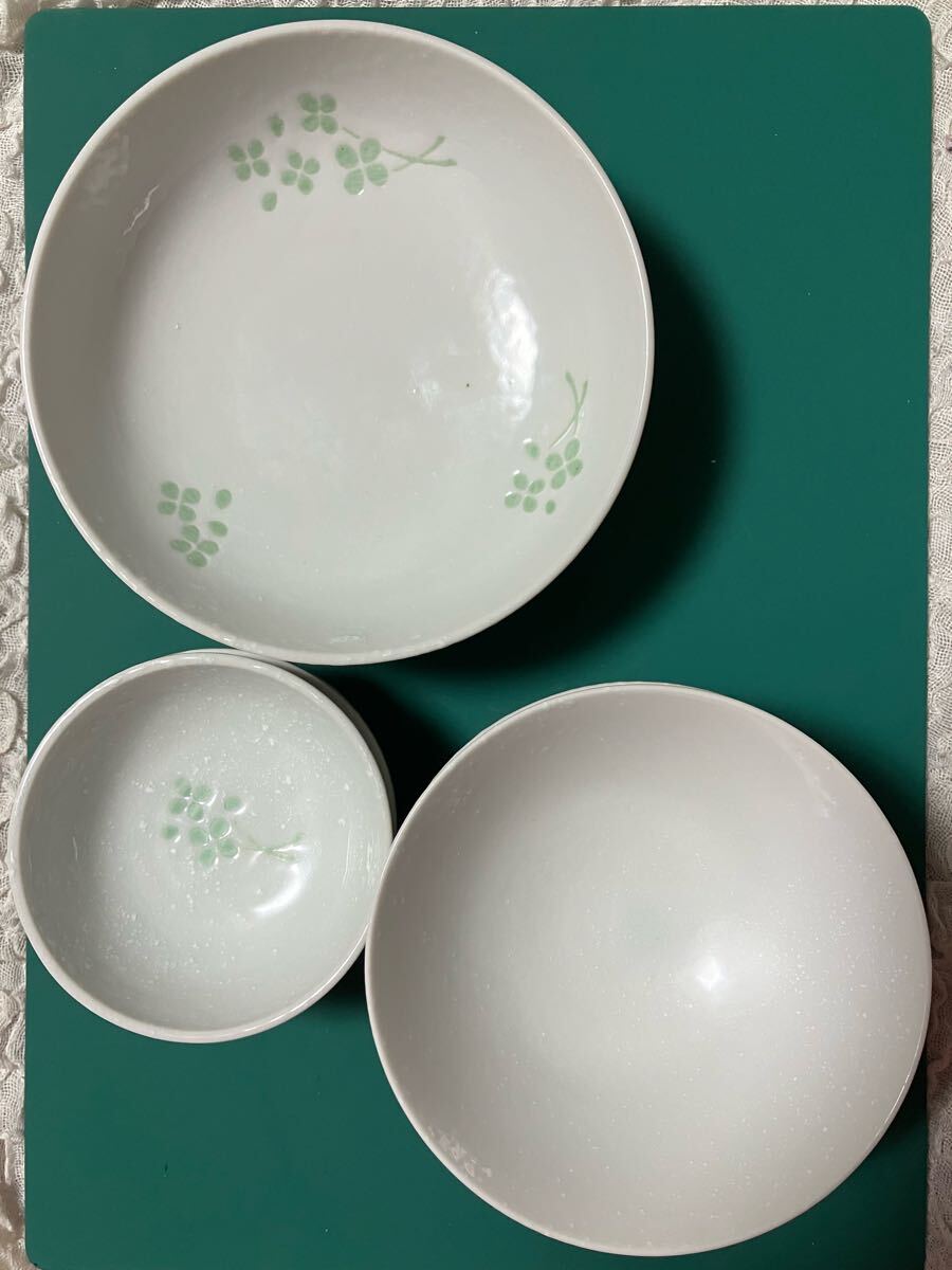 - 新品未使用 食器 大きさ3種類 2枚ずつ 四葉のクローバー 6枚セット 陶器