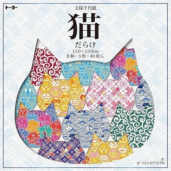 - 【即決】▽猫だらけ 折り紙▽ トーヨー おりがみ ちよがみ 文様 千代紙 ねこ柄 カラフル 個性的 かわいい 15cm×15cm 8柄×5枚 // 005182