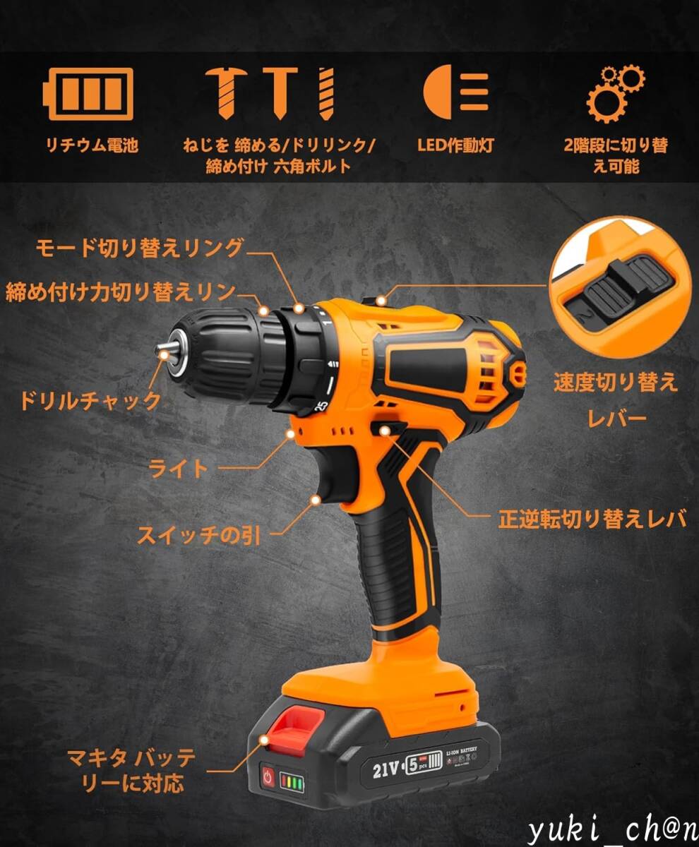 - 電動ドライバー ドリル 電動工具セット 穴あけ バッテリー2個付き (マキタ バッテリーに対応) 25段階トルク調節 DIY初心者