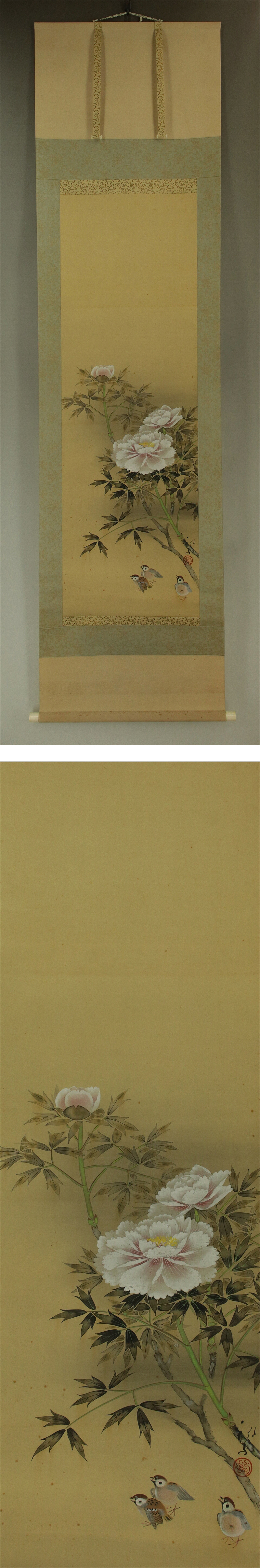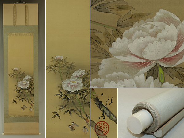 - 【模写】川端龍子【牡丹】◆絹本◆共箱◆掛軸 s12029