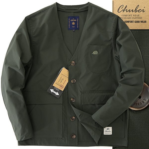 - 新品 チュウベイ 洗濯可 ストレッチ ノーカラー ブルゾン L カーキ 【CH1441121_6_L】 春夏 メンズ CHUBEI リップストップ ジャケット