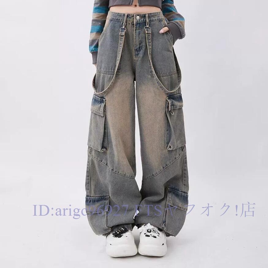 - B3660☆新品デニムパンツ レディース ワイドパンツ ダメージ加工 ストレート デニム ボーイフレンドデニム 大きいポケット ハイウエスト