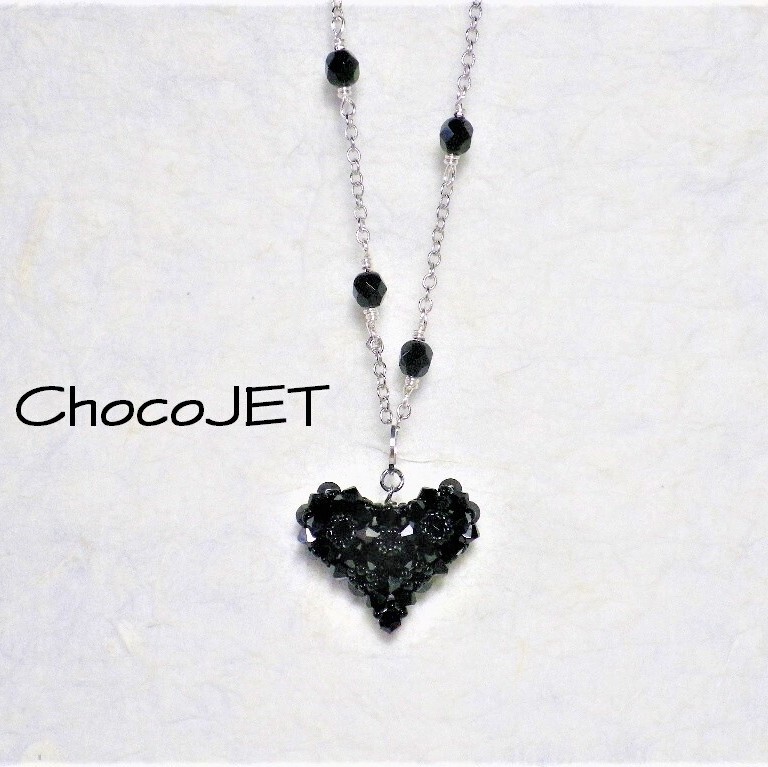 - スワロフスキーハートネックレス ジェットブラック・クリスタルビーズ 黑色 #スワロ