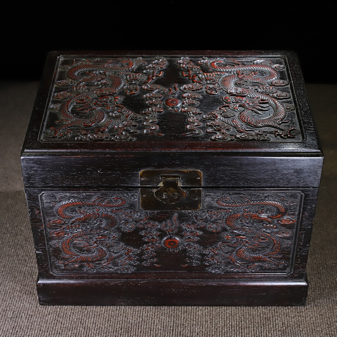 - 唐物 清代 紫檀木 祥龍紋 多寶盒 收納盒 木製 中国美術品 時代物 D63