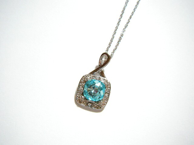- ★チェーン 18KGP ブルートパーズ? ペンダント ネックレス 水色 シルバーカラー【MD46】