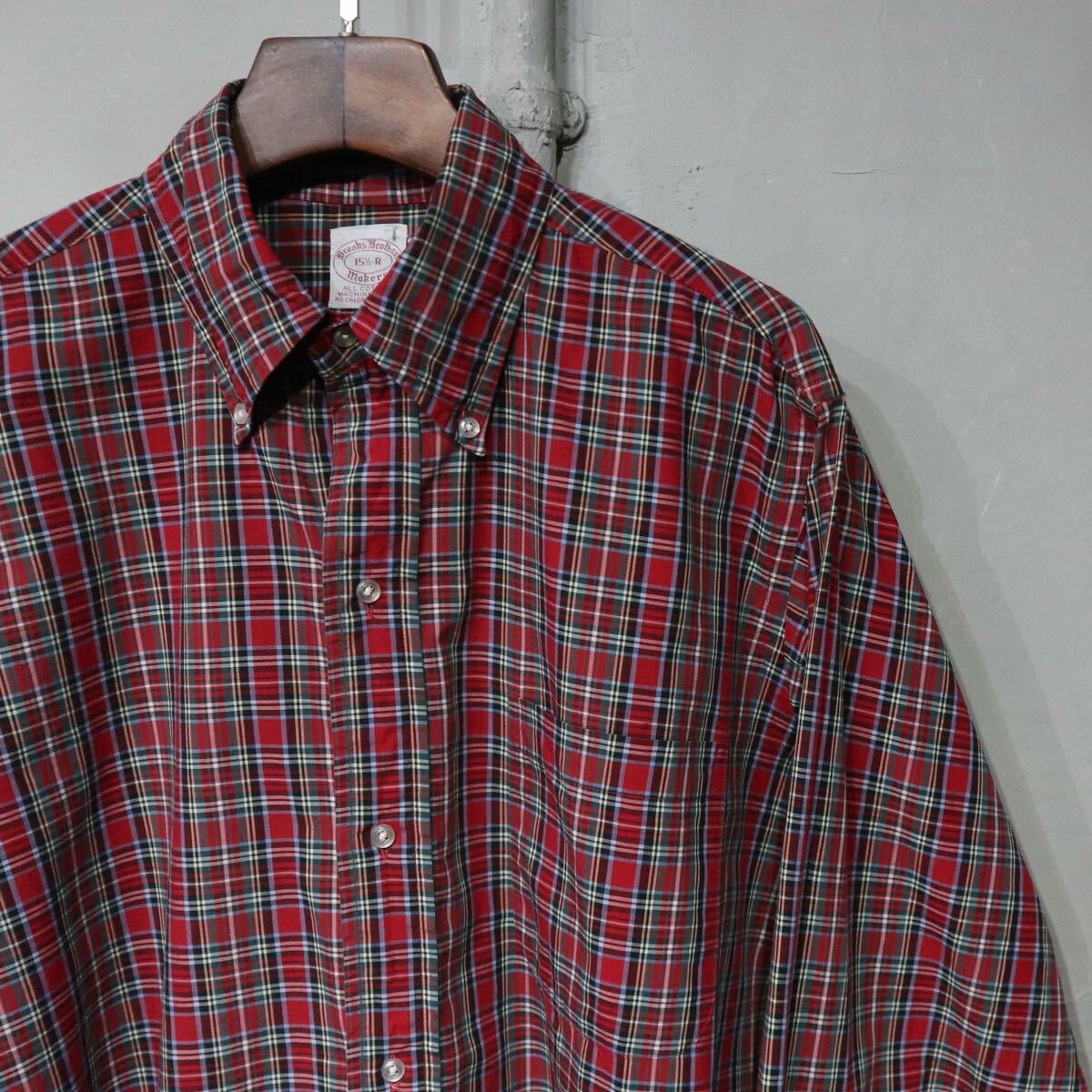 > 【即決】Brooks Brothers makers ブルックスブラザーズ メイカーズ B.D ボタンダウンシャツ 6ボタン チェック柄 赤 レッド 古着 15 1/2-R