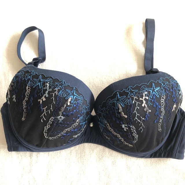 > 新品 未使用 ブラ 税込3520円 ワコール une nana cool ウンナナクール L1 ノンワイヤー ブラジャー D75 E70 F65 対応 Lサイズ 紺 ネイビー