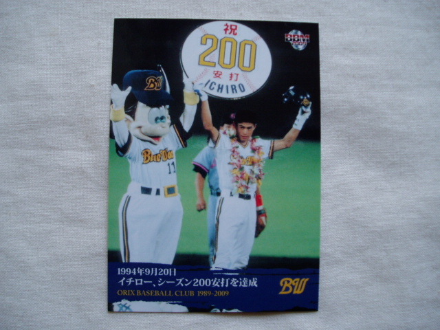 > イチロー シーズン200安打達成◆BBM2009 オリックス球団20周年記念 オリックスブルーウェーブ PRN
