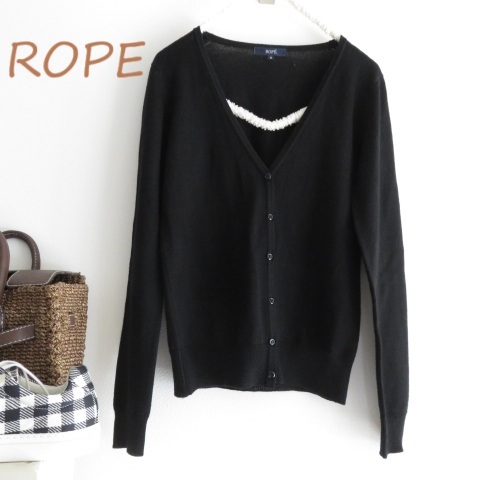- 送料込 匿名配送 ROPE ロペ ボタンニット カーディガン 洗えるニット 毛 ニット 黒 M アダムエロペ