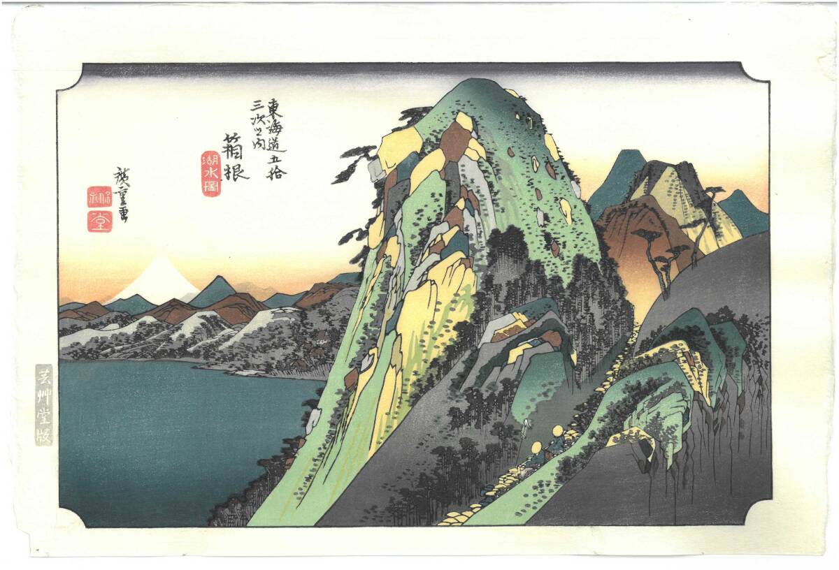 - 真作保証 芸艸堂版 歌川広重 木版画 東海道五十三次 #11 箱根 湖水図 これぞ広重の浮世絵界での出世作!