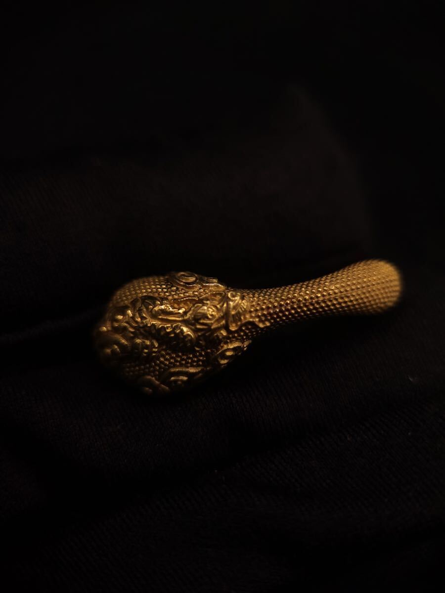 - s-135 雲龍図反角 容彫 金色絵 日本刀 武具 刀装具 銅製 小道具 鍔 目貫 縁頭 拵 長 2.9CM