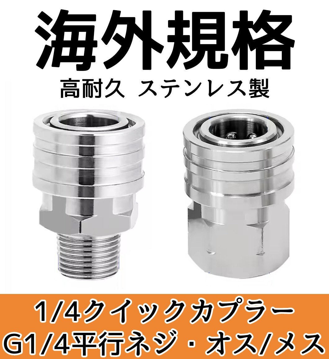 - 【 海外規格 】1/4 クイックカプラー 高耐久 ステンレス製 フォームランス等
