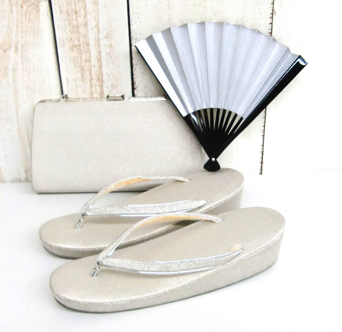 - 草履 バッグ 金銀扇子 3点まとめ*特選 月*履物 ショルダー 手提げバッグ *礼装 和装 和服 和装小物 伝統 着物*共箱付き