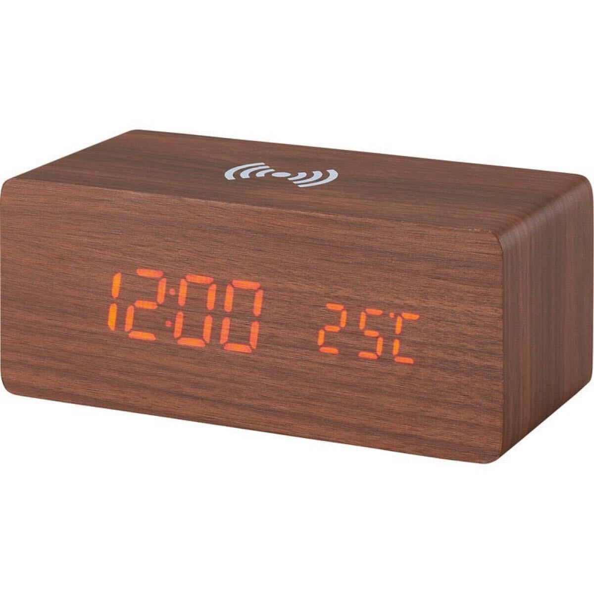 - 未使用品 ワイヤレス 充電 機能付 クロック ワイヤレス チャージャー 目覚まし時計 ブラウン 木目調 インテリア スマホ iPhone 6180