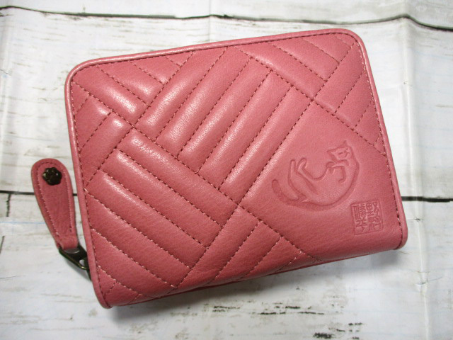 - 半額 50%OFF 新品 財布 レディース 二つ折り ラウンド 野村修平 ブランド 本革 牛革 人気の猫シリーズ ピンク