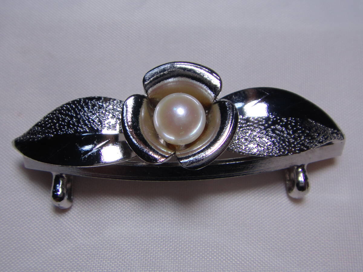 - アコヤ真珠 本真珠 帯留め 約6.2㎜玉 椿 山茶花 花モチーフ ヴィンテージ Y541