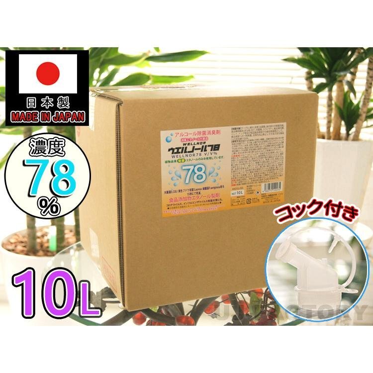 - ★送料無料(地域限定)★日本製 ウエルノール78 10L(コック付き)WELLNOR ウエルシー製薬【1本】 除菌/抗菌 インフルエンザ 食中毒対策に!