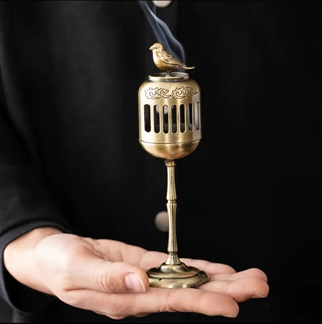 - お香立て HANAKO 銅製 小鳥 香炉 透かし彫り 鳥の雑貨