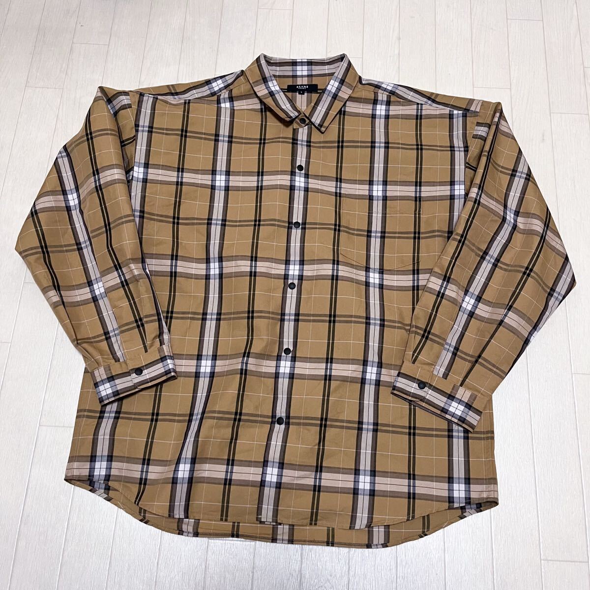 - 和693★ BEAMS HEART ビームスハート ボタンシャツ シャツジャケット チェック 胸ポケットあり 長袖 L ベージュ ネイビー メンズ