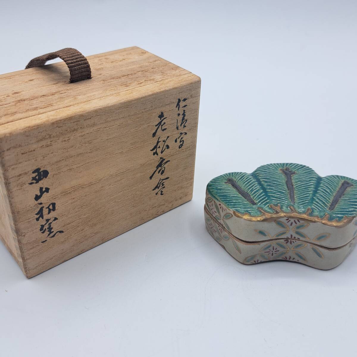 > N41038H● 清水蔵六識 老松香合 西山初窯 茶道具 京焼 和物 共箱付き 烙印 磁器 陶磁器 陶芸 工芸 伝統工芸品 芸術 美術 インテリア