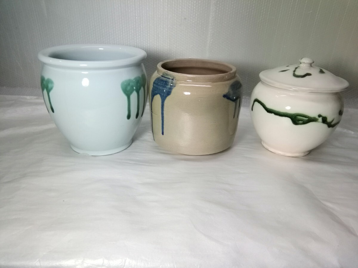 - 甕 まとめて3点 ミニかめ 久松窯 蓋無し 蓋付き 丸壺/丸かめ/甕/かめ/壷/保存容器/漬物/梅干 /味噌ぬか漬け/漬物/ 陶器