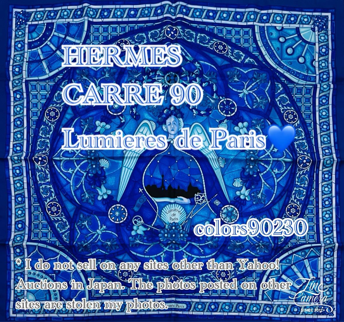 - 激レア!未使用◆ エルメス 大判 スカーフ ストール カレ 90 シルク100% パリの灯 / Lumieres de Paris ロイヤルブルー 完売入手困難