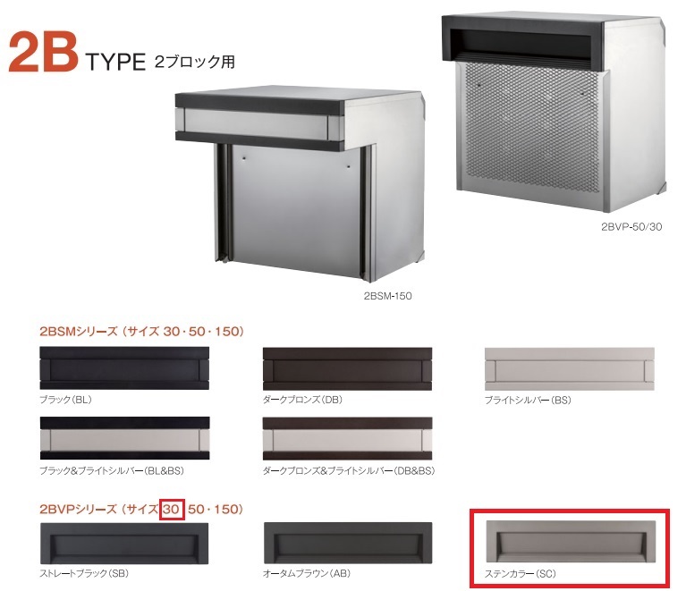 - 【 ポスト 】「 住友林業緑化 」「 ビューポスト 2BTYPE 2ブロック用 前入後出 」「 30サイズ ステンカラー 」「 2BVP-30-SC 」 在庫3個