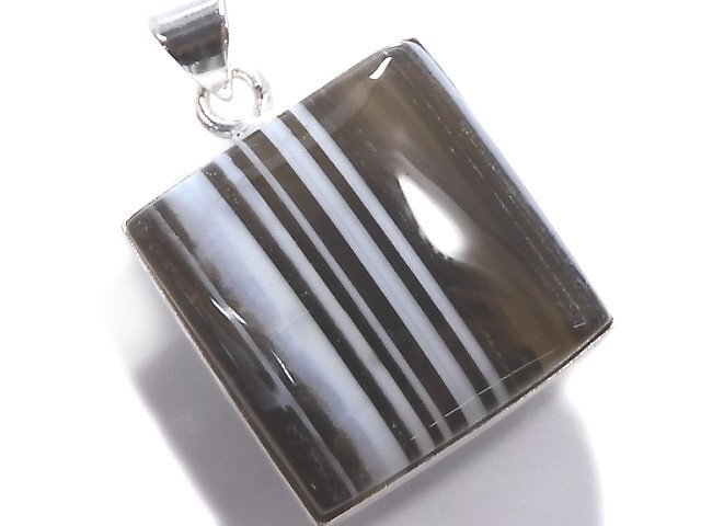 - ストライプ模様が素敵な3Aブルーオパール カルセドニーのシルバーネックレス