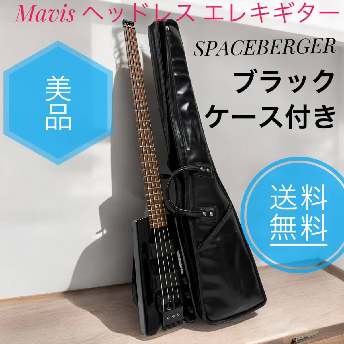 - ☆送料無料 美品 Mavis メイビス SPACEBERGER スペースバーガー Black ブラック ヘッドレス エレキベース エレキギター ケース付き