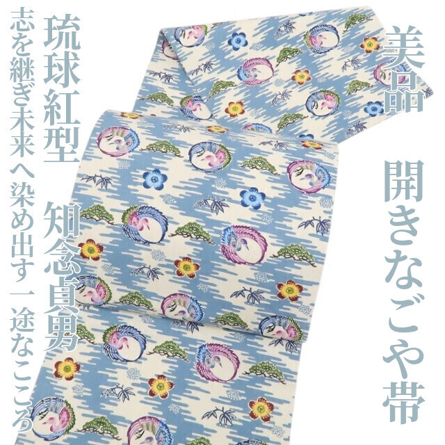 - tomihisa 美品 琉球紅型 知念貞男 落款“志を継ぎ未来へ染め出す一途なこころ”着物 額縁仕立て 開きなごや帯 5519