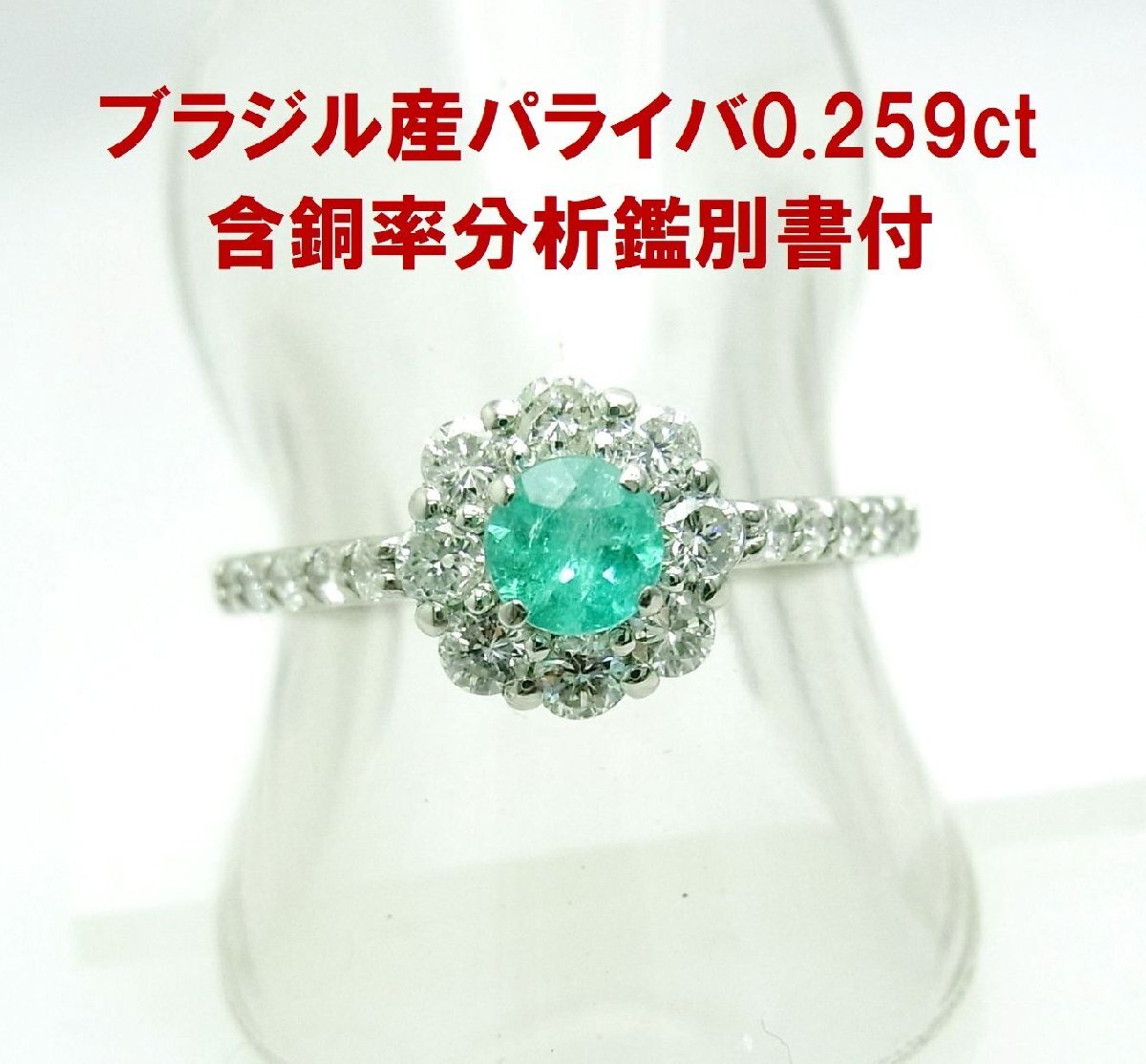 > 超激アツ商品 X線分析鑑別書付 ブラジル産0.259ct 天然パライバトルマリン ダイヤ プラチナリング 動画あり 送料込