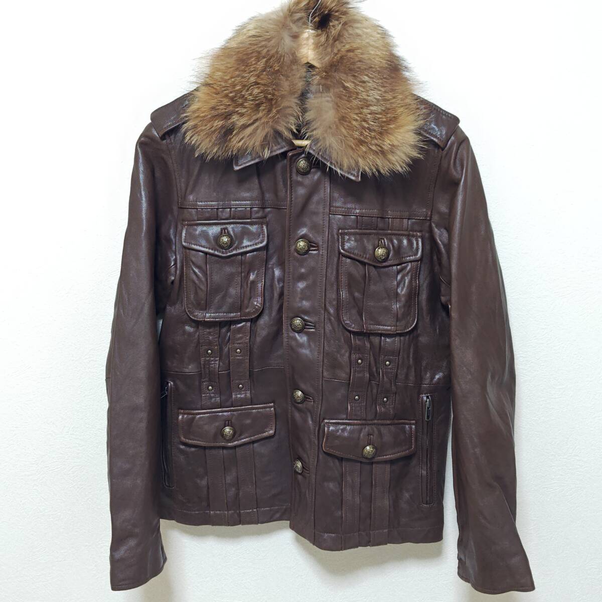 > 豪華!!柔らか山羊革◎【DIFFERENCE】ディファレンス RUPERT ルパート ラクーンファー仕様 レザー ジャケット 革ジャン ブラウン 2/Y28667j